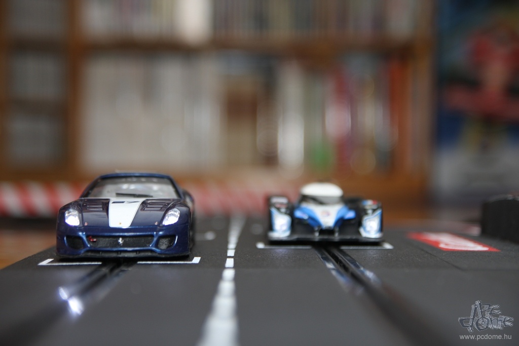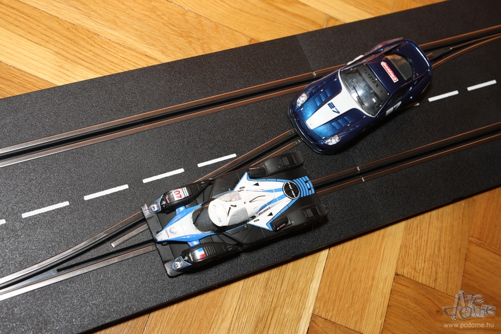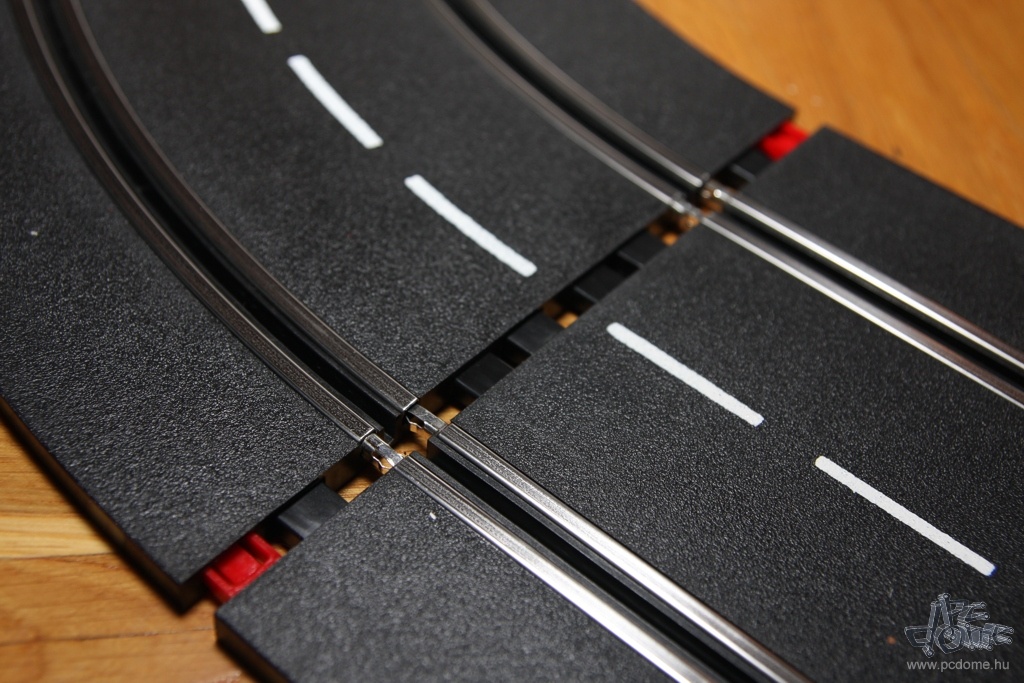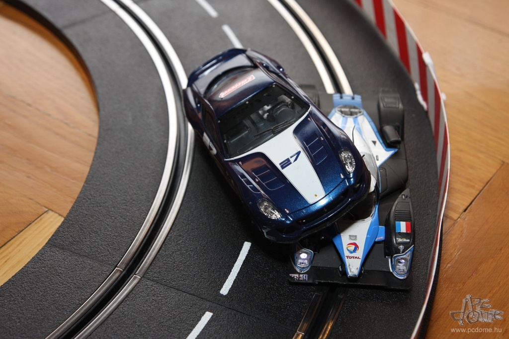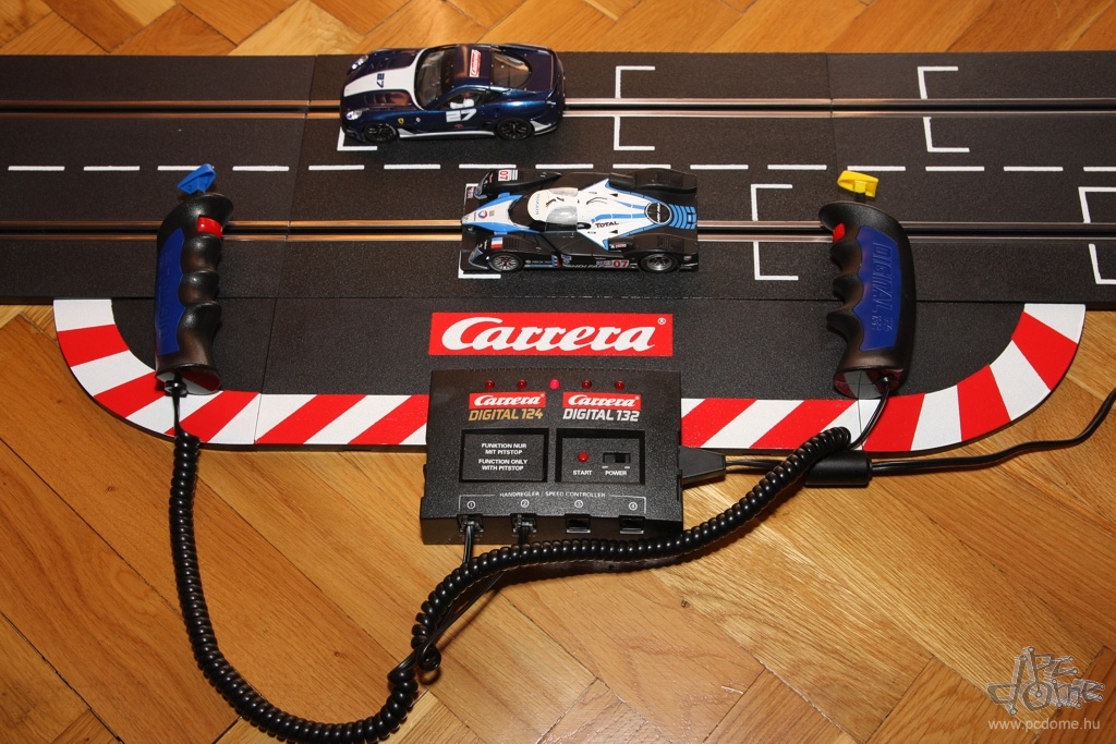 A tesztre kapott készletből egyfajta nyomvonal összeépítésére kaptam javaslatot a leírásban, nem is kísérleteztem mással. Számos különböző doboz létezik amúgy, ezekben más és más pályarajzolat és más autók találhatók. De mindenből vehetünk külön is: a Carrera katalógusa rengeteg autót tartalmaz, és természetesen a pályaelemekből is bármelyiket megvehetjük külön. Tavaly például a forgalmazó munkatársai a Hungaroring nyomvonalát alkották meg Carrera elemekből. A gyártó weboldalán pedig különböző autóversenypályák vonalvezetési rajzát és a hozzájuk szükséges elemek listáját is megtalálhatjuk. A már említett, egy- vagy kétirányú sávváltón kívül pedig olyan speciális részeket is vásárolhatunk, mint például a körszámláló vagy a boxutca. Az utóbbi használatakor időnként be kell hoznunk autókat a boxba, hogy feltöltődjön ismét virtuális üzemanyaggal, ezzel is tovább színesítve a játékot.