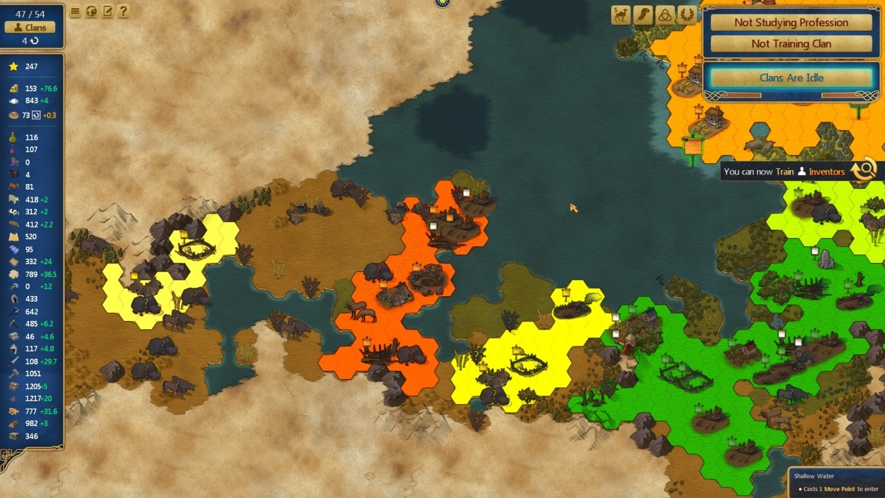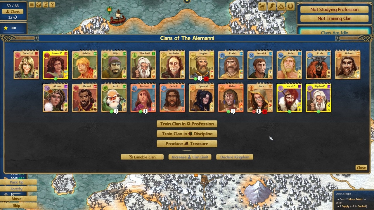 Választott törzsünk klánokból áll, őket foghatjuk be különböző feladatokra, foglalkozásokra. Mindegyik klánnak vannak tulajdonságai, amelyek befolyásolják, hogy milyen feladatokat hajlandó elvégezni. Van, amelyik csak a mezőgazdaságban hajlandó dolgozni, de olyan is, amelyik nem hajlandó elhagyni a települést, így olyan foglalkozást kell neki találni, amit helyben végezhet. A klánok ráadásul családokból állnak, így minél többen vannak, annál hatékonyabbak a tevékenységükben, viszont több ételt is fogyasztanak, amire így a játék egésze folyamán figyelnünk kell.