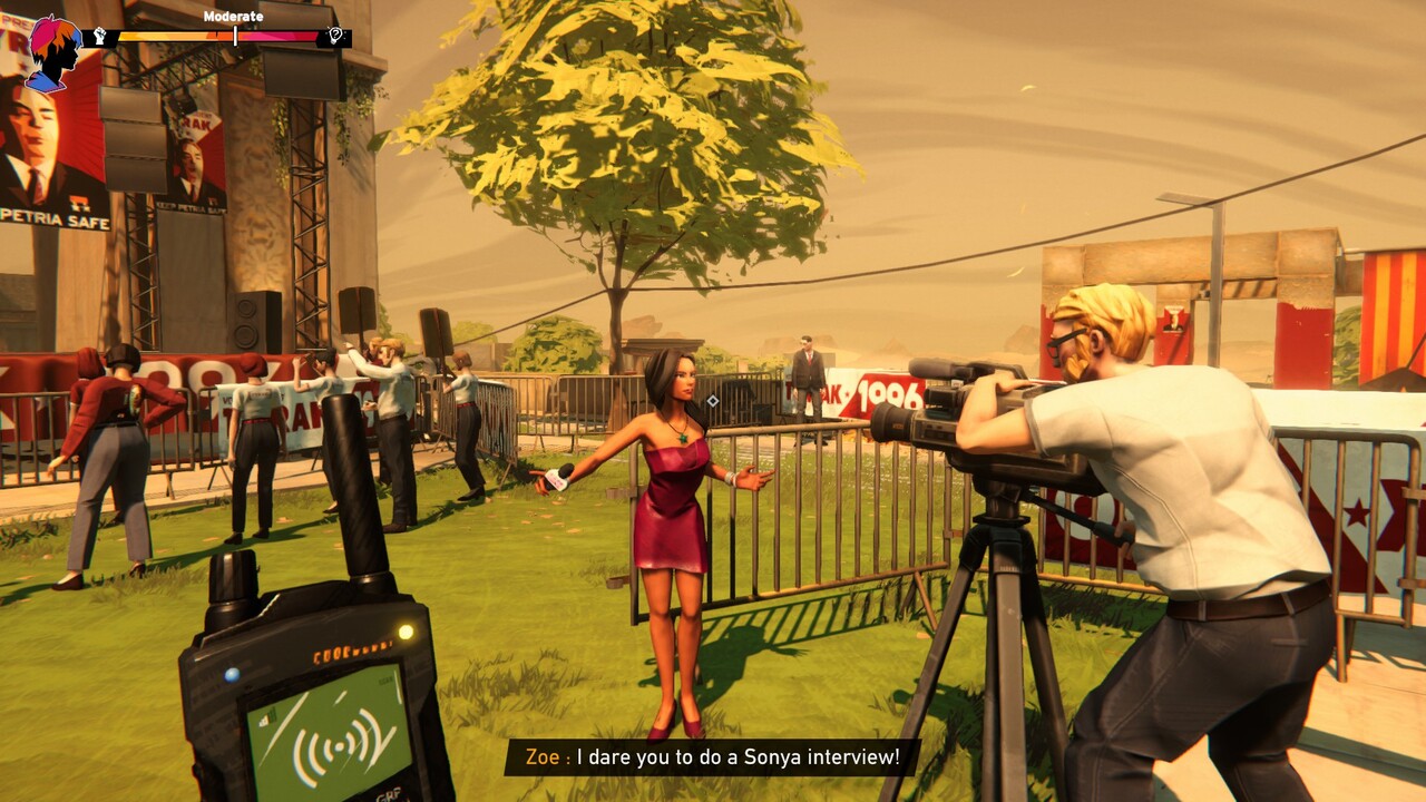 A kalandjáték része pont ugyanolyan, mint az emlegetett Road 96. Azaz elég jó lett. Többféle kimenetele lehet a történetnek, a mi döntéseinktől függően. Azt viszont elképzelni se tudom, mit gondolhat erről a játékról egy olyan ember, aki nem játszott még az előző epizóddal. Nekem könnyű volt belehelyezkednem a szituációba, mert ismertem a környezetet, a diktatúrát, sőt a legtöbb szereplőt is. (Tele van a játék easter-eggekkel a Road 96 játékosoknak, amelyek azonban nem mondanak semmit azoknak, akik ezzel akarják kezdeni a sort.) De nem tudom, mennyi idő felmérni a helyzetet Petria történelmének és főbb politikai szereplőinek az ismerete nélkül. Természetesen ott van Tyrak a diktátor és Florres az ellenzéki jelölt. Megjelenik a csonkolt ujjú kamionsofőr az anarchista ellenállóktól. És persze Zoe-ról is lehet tudni, hogy a rendszer kegyeltje, hiszen a diktátor egyik miniszterének lánya. És ott van még Sonya, a propagandista is, akiről – hála a másik játéknak – eleve tudunk egy csomó mindent, amik most újra előjönnek. Például a fenyegető levelek a postaládájában, vagy a későbbi sofőrjének a története.