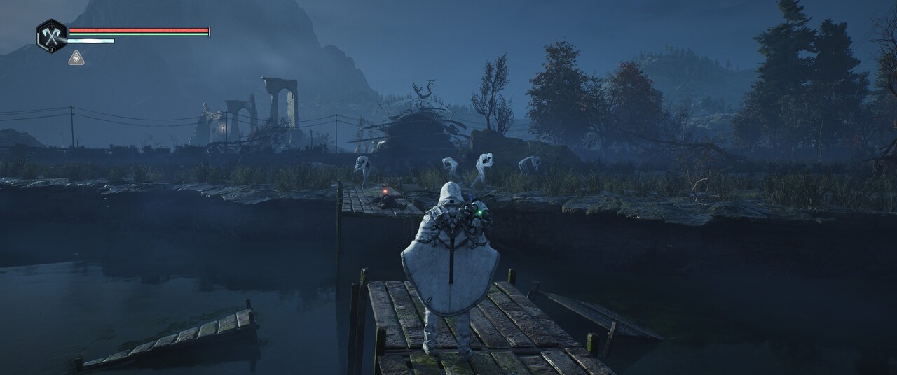 A „healing pulse” rendszer ügyes időzítést kíván – akik játszottak a Nioh játékokkal, azoknak ismerős lehet ez a mechanika, hiszen ott Ki pulse-ként volt ismert. Ilyenkor a megfelelő időzítés segítségével staminát és életet nyerhetünk vissza a megfelelő gomb lenyomásával, ám hosszú távon ez a képesség sajnos nem mélyül. A drón társ mozgásban és harcban is segít, de inkább puzzle-knél válik fontossá. Ugyan el tudja terelni az ellenfelek figyelmét, de harc közben nem sokkal több haszna van. Ennek köszönhetően a játék nehézsége szignifikánsan csökken, ha ügyesen használjuk. A nehézség egyébként abszolút baráti, a legkönnyebb szinten nem kell sokat foglalkoznunk az életerőcsíkunkkal, de nehezebb fokozatokon már meg tud izzasztani a játék.