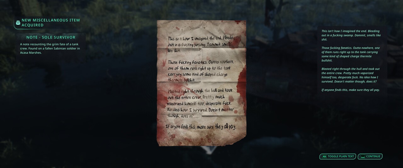 A főhős, Remy egy vallási polgárháborúból menekült árva, aki visszatér Hadiába, hogy felkutassa szüleit, miközben a társadalom két oldala a pusztulás szélén táncol. A cselekmény nem fél bemutatni a háború szörnyűségeit: halott gyerekeket, önbíráskodást, megbánást, a vallási fanatizmus következményeit. A történet atmoszférája végig nyomasztó, néhol viszont lassul, sőt a befejezés kifejezetten abrupt, további folytatás lehetőségét sejteti. Sok érdekes és mély párbeszéd van a játékban, ezek közül egyet emelnék ki az elejéről (spoilermentesen), amikor egy megárvult kislánnyal találkozunk egy padláson. A gyermek traumái és története tökéletesen festi le a háború borzalmait és érzelmileg is betalált nálam. Az atmoszféra csillagos ötös, ennek felfedezésére és átélésére azonban sok időre és türelemre van szüksége a játékosoknak, ezért elképzelhető, hogy néhányan hamar ráunhatnak.