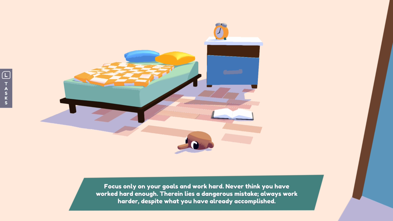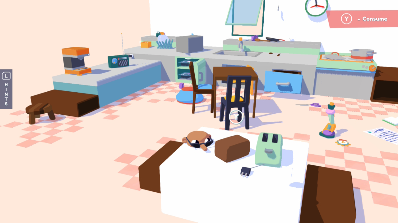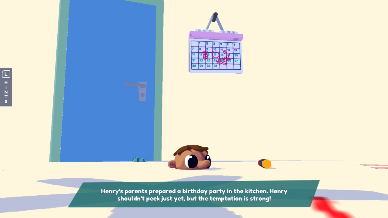 Az, hogy Harrynek miért van félbevágva a feje, nem derül ki (már az intróban is úgy kukucskál ki az alaposan bepólyázott csecsemő formájából), de talán nem is lényeges. Mindenképpen ad egy vicces felütést, ahogy csúszunk-mászunk vele a különféle helyszíneken, ám akad egy ennél sokkal fontosabb tulajdonsága. Mégpedig, hogy át tudja venni tárgyak formáját, vagy tulajdonképpen megszemélyesíti azokat. Így minden berendezési tárgyat tudunk mozgatni, működtetni, például egy ceruzával rajzolni, egy rádiót behangolni, vagy szimplán papírrepülőt hajtogatni egy lapból, majd megreptetni a kész művet.