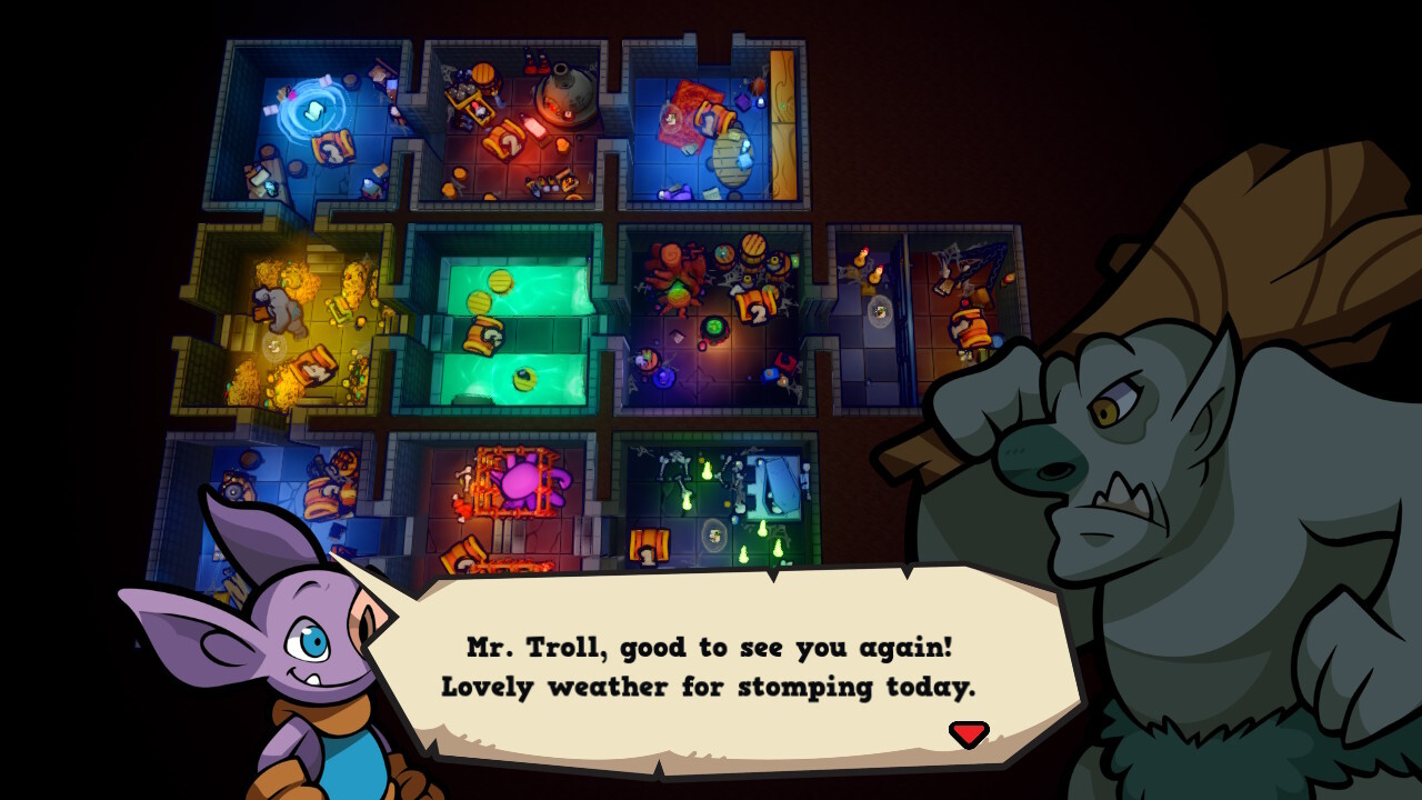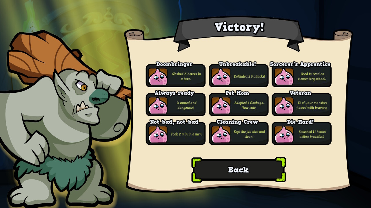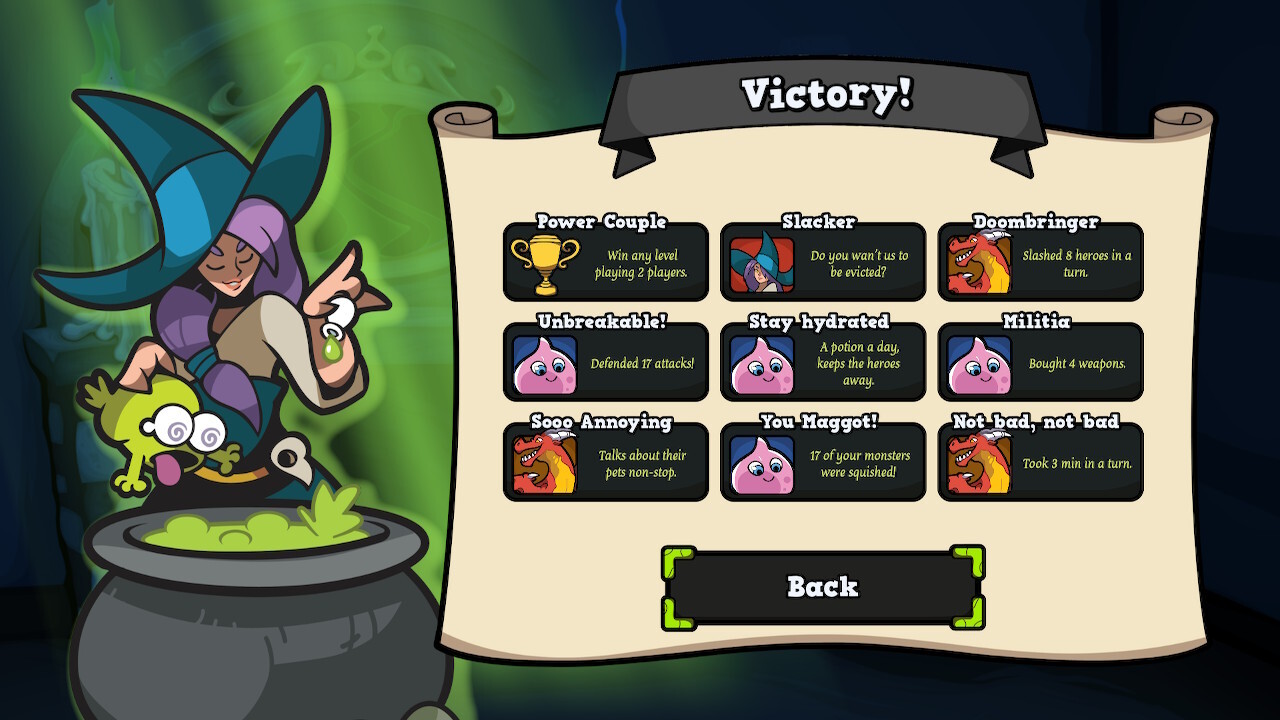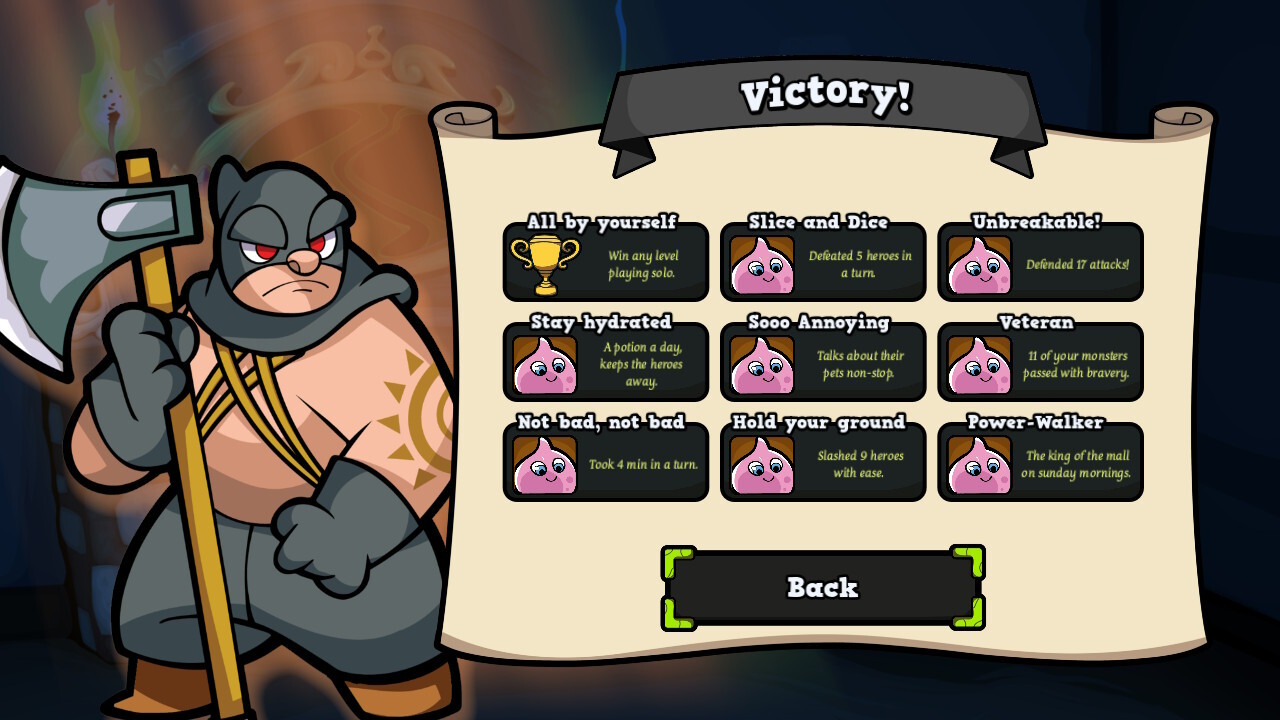 Az eredeti játék magyarul is megjelent (el is fogyott szépen), amit sokan megszerettek, köztük az én baráti társaságom is. A Keep the Heroes Out! egy aszimmetrikus, kazamatavédős játék, ahol a játékosok szörnyeket irányítva próbálják megvédeni a nehezen összelopott javakat a hullámokban érkező „gonosz” hősök elől. Van egy bája és humora a KtHO!-nak, amit könnyű megkedvelni, de a nehézsége miatt nem egyszerű megnyerni még a könnyű fokozaton sem (illetve ha már eleget játszottál vele, bizonyos lényekkel vannak bevált taktikák). Úgy, ahogy van, átültették a társasjáték alapdobozának 20 forgatókönyvét videojátékos környezetbe, és egy tanulópályát azért még eszkábáltak az új belépők kedvéért.
