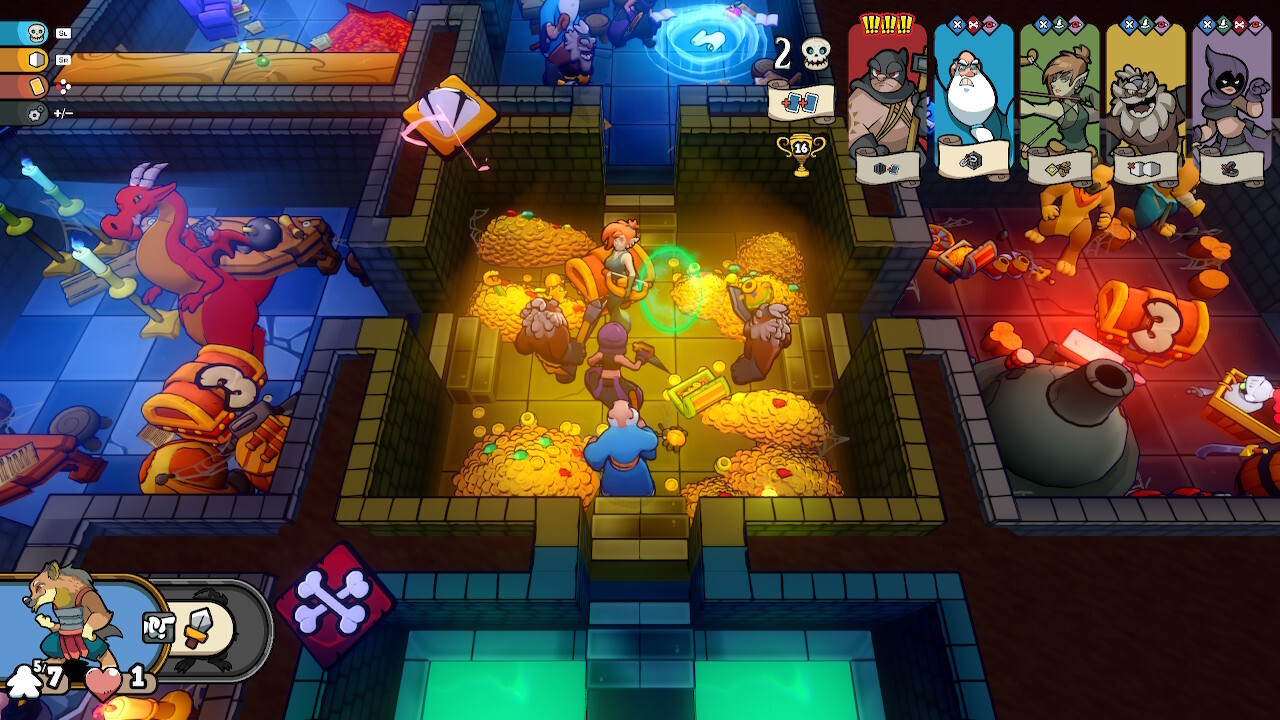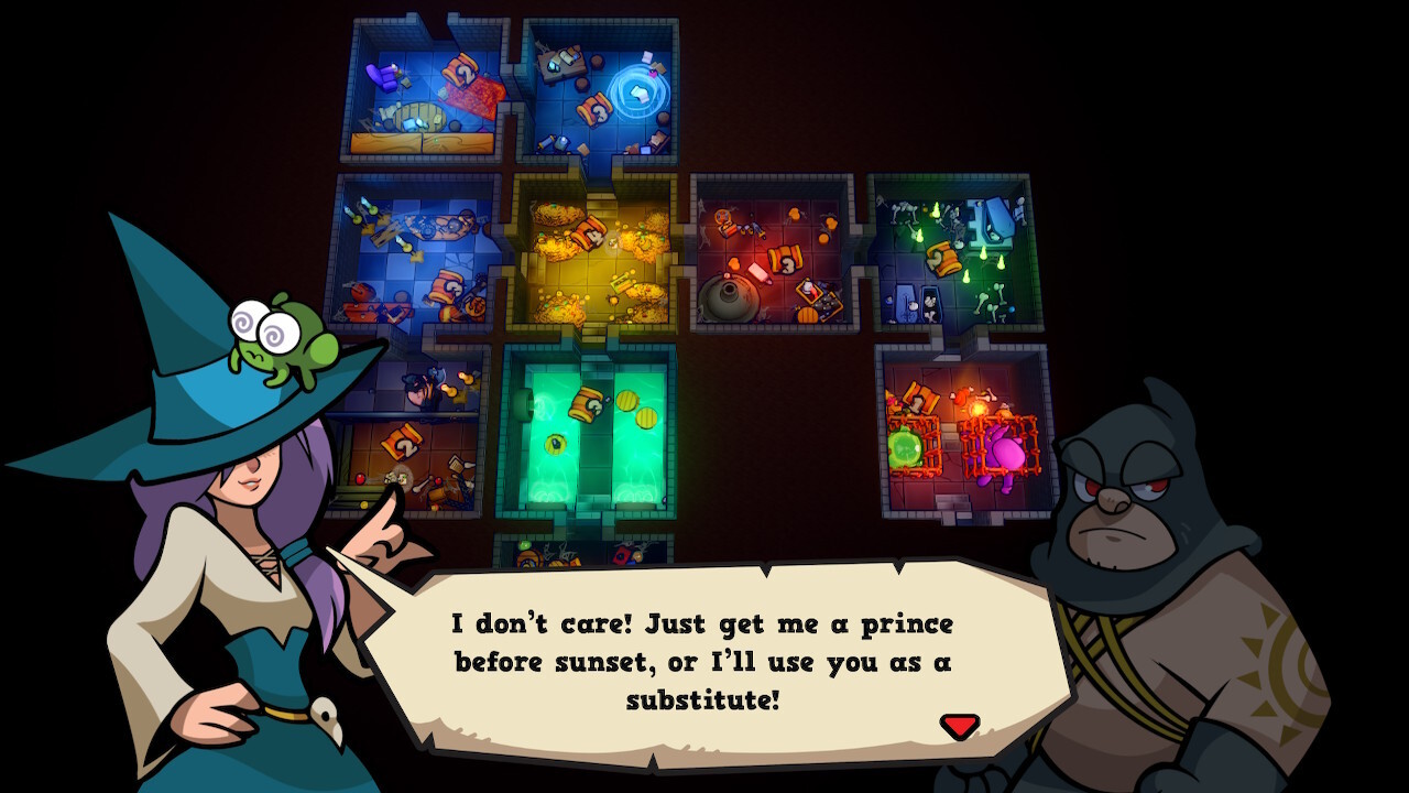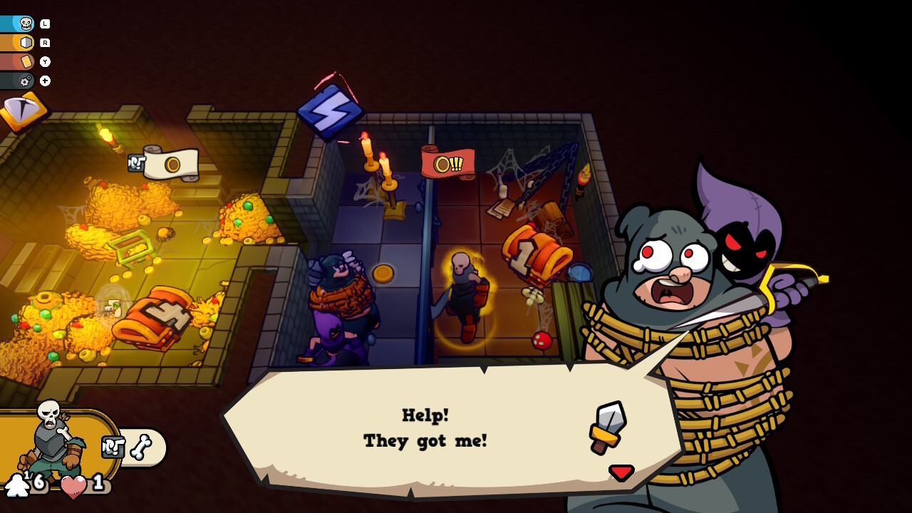 Bár a Keep the Heroes Out! képi világa rendben van, a kamera az egész több teremből álló labirintust mutatni akarja mindig, ami által picike lesz minden. Ezt Switchen kézikonzol módban tudtam a legjobban élvezni, de egyedül nem akkora élmény. Szerencsére a szoftver kapott online opciót is, ahol egyszerre 3 játékos is nekifeszülhet a kazamatáknak, a cross-playnek hála pedig akár három különböző platformról is nekiindulhatunk (Switch 1/2 és PC). A zenék pörgősek, az effektek is okésak, animálva lettek még a lövések is. Ami nem sikerült annyira jól, az a navigálás, olyan mintha picit laggolna az egész, pedig csak a kártyákat és akciókat választjuk ki. Emiatt körülményessé válik az irányítás, így lassabban tudunk csak játszani.