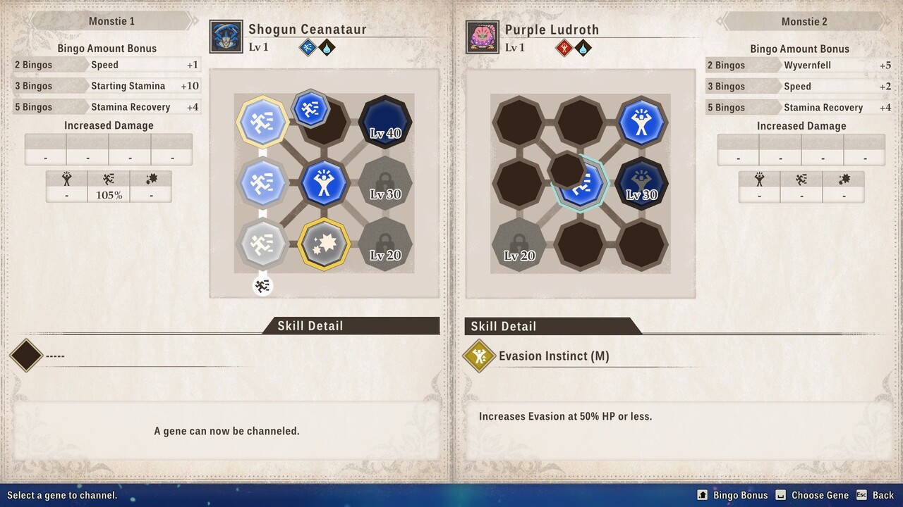 A pukei-pukei már vörös és tüzet okád, ráadásul mintapéldány, de még mindig nem vagyok megelégedve. A következő lépés a génmanipulálás. Szeretném, ha karmai vérző sebeket okoznának és Deadpool szintű regenerációra tenne szert. Első körben kéne keresni egy odogaront, ezeknek a predátoroknak rendkívül éles a karmuk, és a regenerációt egy elder dragontól kellene kölcsönvenni. Ha megvan a két kiszemelt alanyom, és sikeresen befogtam őket, akkor a műtőasztalon egyszerűen tudom cserélgetni génjeiket, és így aktív vagy passzív képességeiket. Persze ha teljesen megszállott lennék, mindkét példányból S-kategóriást vadásznék, azaz a megfelelő területen megerősíteném az odogaronállományt, amíg meg nem kapom a tökéletes karmokat, és csak azután kezdeni neki a műtétnek. De a pukei-pukei még mindig nem érte el maximális potenciálját. De most már elég fejlett ahhoz, hogy a számomra megfelelő területen portyázni küldjem, hogy ott értékes passzív képességekre tegyen szert. „Tréningre” is küldhetjük szörnyeinket a képességeik maximalizálása érdekében.