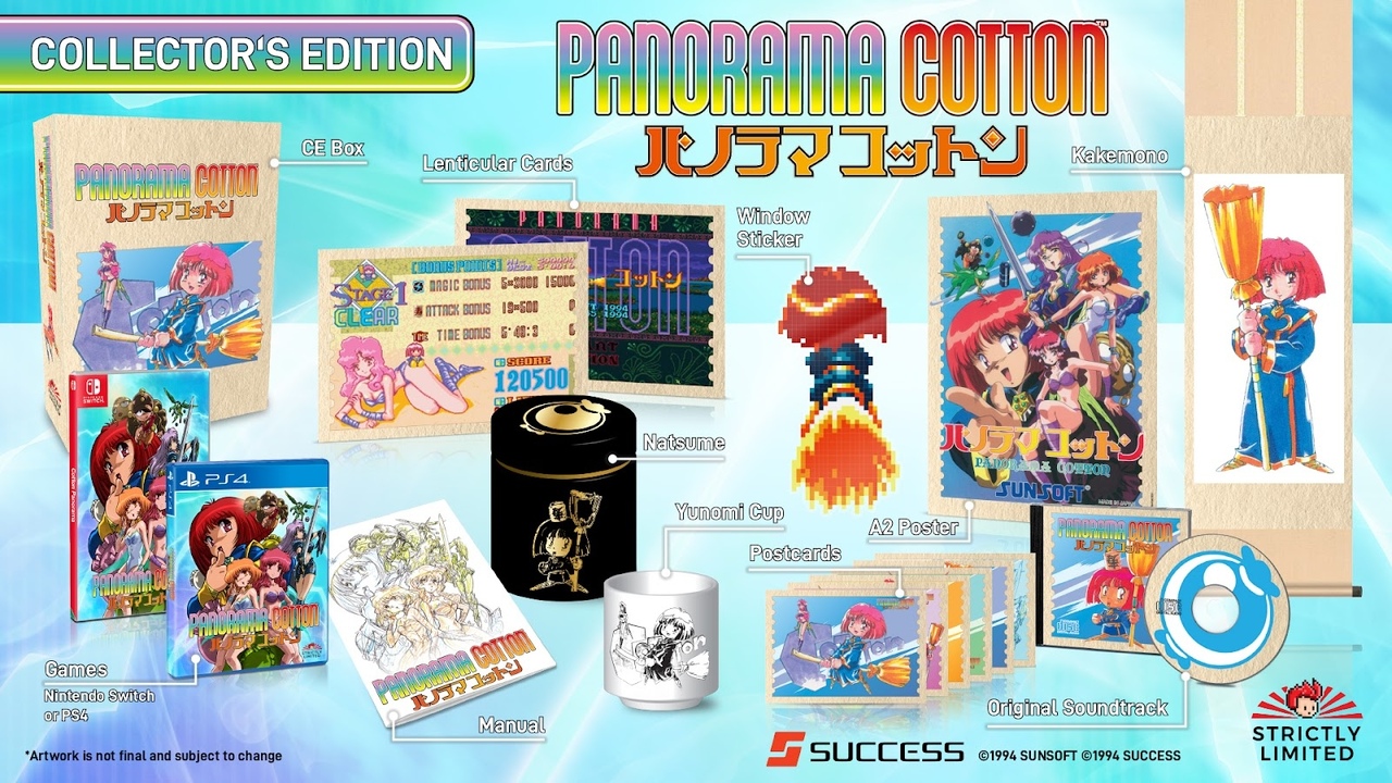 A Panorama Cotton PlayStation 4-re és Nintendo Switchre jelenik meg, október 29-én. A dobozos verziók mellett digitális formában is kapható lesz, a fanatikusoknak pedig Sega Megadrive és Sega Genesis cartridge-ek formájában is kiadják, 49,99 eurós áron.