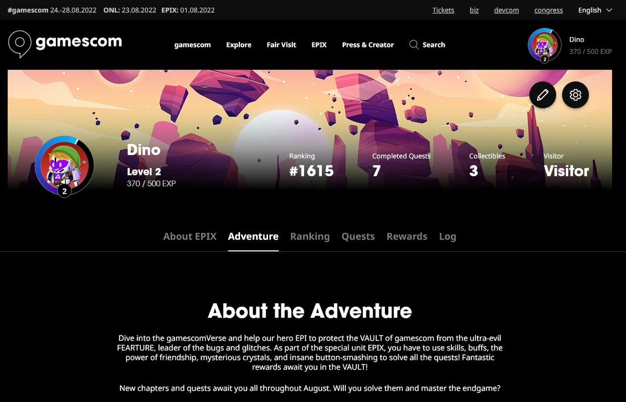 Idén is elindult a gamescom EPIX, a kölni rendezvény rajongóinak szóló játék, amely hét fejezeten keresztül tartogat feladatokat a résztvevőknek. A különböző küldetések teljesítésével pontok gyűjthetőek, amelyek növelik a szintünket, és akár különböző nyereményekhez is hozzájuthatunk.